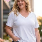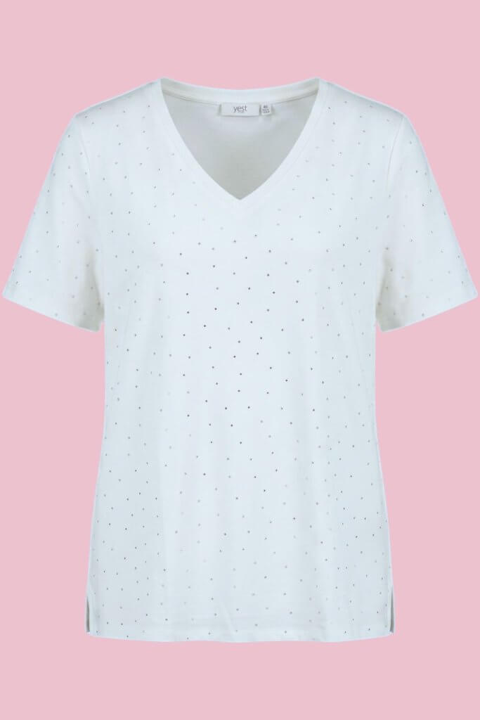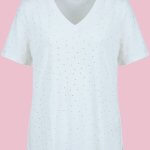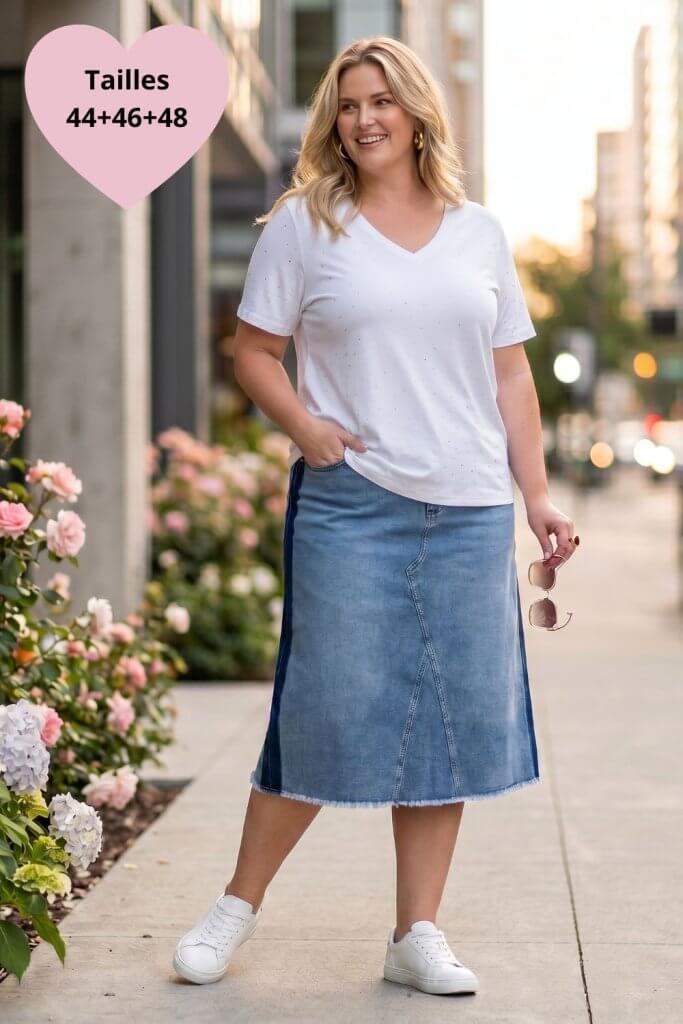 Le t-shirt Nina, c’est le basique qu’on attendait — celui qui n’a de basique que le nom. Son blanc lumineux éclaire le teint et ses strass délicatement semés sur le jersey lui donnent cette brillance scintillante qu’on adore au quotidien comme en soirée. Son col en V allonge le cou, ses petites fentes sur les côtés apportent ce détail mode qu’on remarque sans savoir pourquoi le look est si réussi. Signée Yest Curve, pensée pour les tailles 44 et plus.
