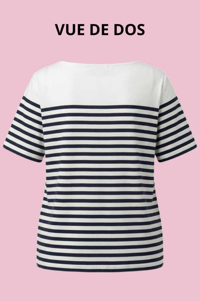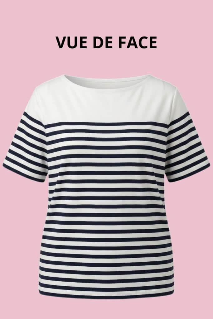 Le top Jamila, c’est la marinière qu’on attendait — celle qui a du caractère sans en faire trop. Ses rayures blanc cassé et marine sont équilibrées, douces, intemporelles. Son encolure bateau soignée lui donne une élégance naturelle qu’on adore immédiatement. Signée Yest Curve, marque d’origine néerlandaise spécialisée dans les grandes tailles, chaque détail est étudié pour valoriser, pas pour contraindre.
